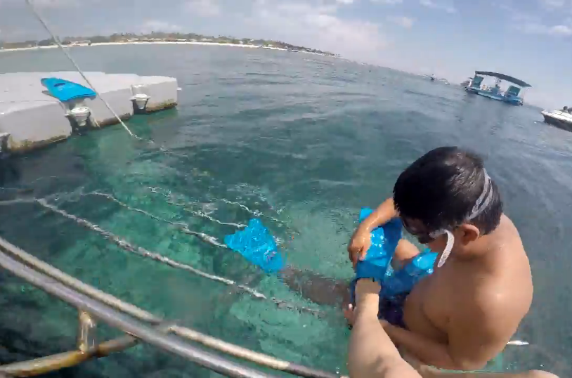 巴厘岛之行犹如天上的繁星,每一站都熠熠生辉。而深潜是那脑海里北斗星——我心之所向。如果你问我为什么向往潜水?我的回答是,水下对于我来说是另一个世界,在这里有我那不曾探过的美丽。没有繁杂、喧嚣,仿佛只有自己与那些我也许叫不出名字的鱼儿。七月的风暖暖的,连云都有点热热的,深潜的那天是个有着微光的好天气,坐在小艇之上,戴好装备,看着蔚蓝的海水,工作人员贴心的为我带好脚蹼,难掩内心的雀跃,是的这是我的第一次深潜。