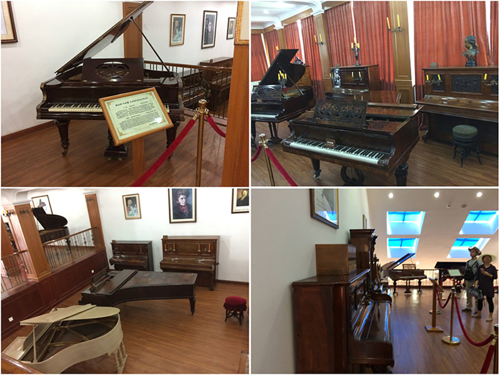见识过藏海补山惊奇,沿路直上来到听涛轩,也就是鼓浪屿钢琴博物馆。博物馆分上下两层,两座管楼,博物馆里陈列了爱国华侨胡友义收藏的40多架古钢琴,其中有稀世名贵的镏金钢琴,有世界最早的四角钢琴和最早最大的立式钢琴,有古老的手摇钢琴、有产自一百年前的脚踏自动演奏钢琴和八个脚踏的古钢琴等。走过购物美食街买点伴手礼就结束行程返程。