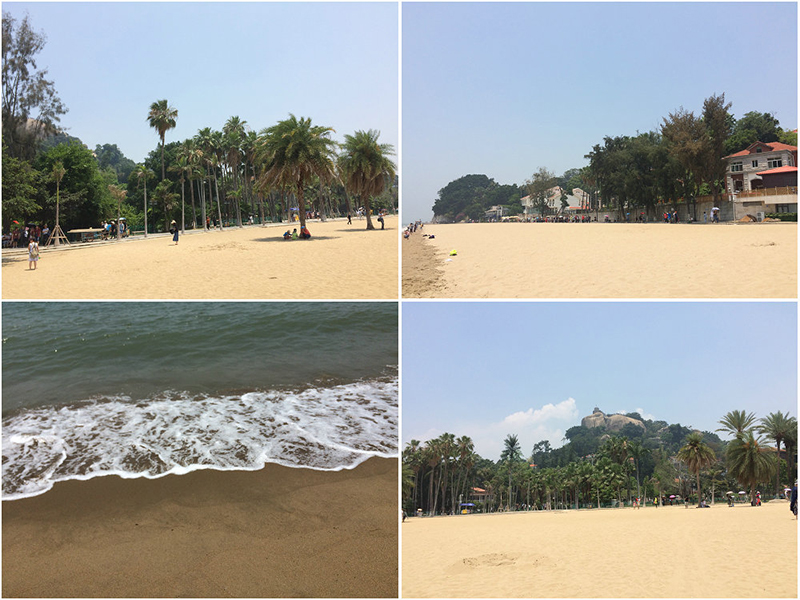 港仔后沙滩背靠日光岩,沙细水浅,风光迷人。沙滩是孩子们最爱的地方,都带好了小沙铲准备大干一场。脚踩细沙,戏水踏浪,孩童追逐嬉闹,一番热闹景象。