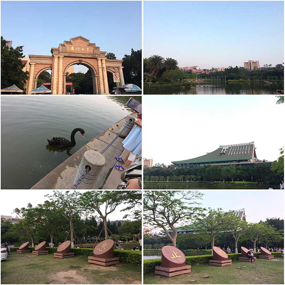 厦门大学毗邻南普陀寺,外临白城海滩,内拥芙蓉湖、棕榈树林荫道、情人谷,是名符其实的山海花园。对厦大慕名已久,之前来厦门都没有时间去厦大看看。这次总算有幸走近厦大一睹芳容。从大南校门进入校区,沿林荫道一路来到芙蓉湖。湖前立有刻着厦大校训“自强不息,止于至善”的墩碑。芙蓉湖水天一色,特色建筑倒影水中,黑天鹅成群的在湖中戏水。黑天鹅不时被学子游人投喂的食物吸引来到岸边,小鸟也飞下来觅食,一片和谐共处的景象。