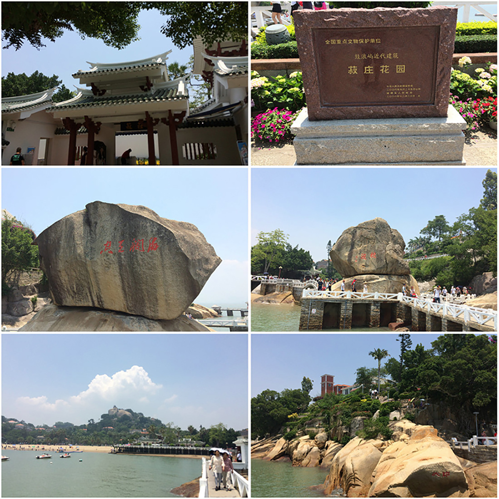在孩子们的不舍中离开沙滩走进菽庄花园。菽庄花园建于1913年,原是地方名绅林尔嘉的私人别墅,园主人以他的字“叔臧”的谐音命名花园。菽庄花园利用天然地形巧妙布局,藏海补山,各景错落有序,园在海上,海在园中,既有江南庭院的精巧雅致,又有海鸥飞翔的雄浑壮观,动静对比,相得益彰。