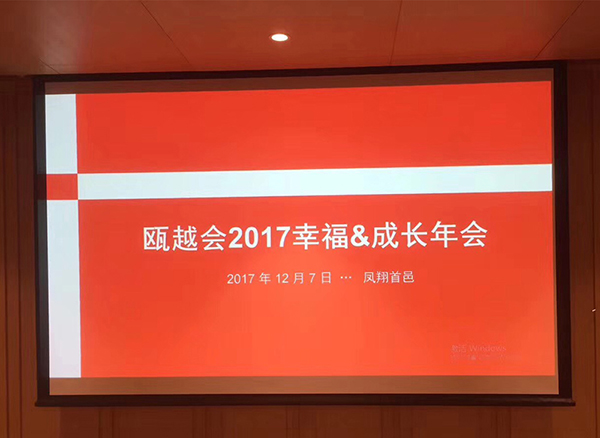 总结2017,展望2018,在经过两轮投票之后选举出新任会长张丰。在张丰会长的主持下推选出了2018年瓯越会第六届委员。经过张丰会长和委员们集体讨论后,明确了瓯越会2018发展方向。2018年的目标:老板的成长;2018年12个变化;幸福计划:亲子游。