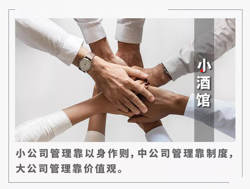 小公司管理靠以身作则,中公司管理靠制度,大公司管理靠文化。很多初创企业一开始蒙眼狂奔、只看业绩,随着人越来越多,才渐渐意识到,想要凝聚人心使大家齐心协力向目标挺进,还得靠公司统一的价值观。