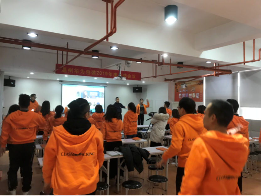 会议前,由洪总及厂长领队代领大家跳了一段华为招牌舞---抓钱舞,来为今天的会议拉开序幕。