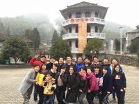 2016.01.09,鼎业机械外贸部相约泽雅;我们将车停在泽雅唐宅,徒步开始,我们的目的地为泽雅金刚尖;一路沿溪步行到黄坑,从黄坑开始便是一米见长的石阶,约走个20来分钟便到一个叫黄岭头的小村庄,正巧碰见一户村民正在自家院子里弄番薯粉做的粉丝,我们甚是好奇,原来粉丝是用工具刨出来的;之后我们便沿着黄土古道一直走到仙宅山,那之后,便是一路的水泥路,一直顺着指标就到了金刚尖;整个行程下来,近3个小时,8KM左右的山岭,难易度较好,很适合集体走走;到了金刚尖已是午时,我们个个爬的肚子饿慌慌,好在金刚尖有农家菜,我们一顿饱饭之后,修整一下,为下午的重头戏---丛林穿越做准备;顺便说一下,金刚尖得名是因为近两年一附近村民开发的滑草场,而我们此次过去的目的是丛林穿越,它们是连在一起的;