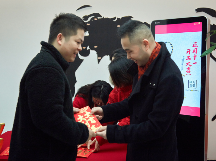 开工第一天,为追求新年吉利的好兆头,红包当然是要安排上的,由我们洪总亲自为每位员工发大红包。