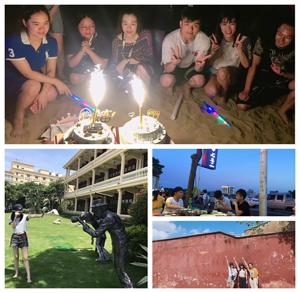 我们组织海滩生日会,唱歌、跳舞、许愿。