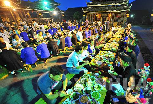 百家宴是独特又古老的汉族民俗文化,属于元宵节习俗。由最初的“做春福”发展而来,是一种在族人内部举行的祈祷仪式,其目的是“聚宗亲,商族事,祈丰收,保平安”。始于北宋时期,至今已有970多年历史。“百家宴”的前身为“祠堂酒”,范围仅限于当地本家聚集一起共进午餐。渐渐的,后来逐渐演绎为联谊性质的聚餐——百家宴。