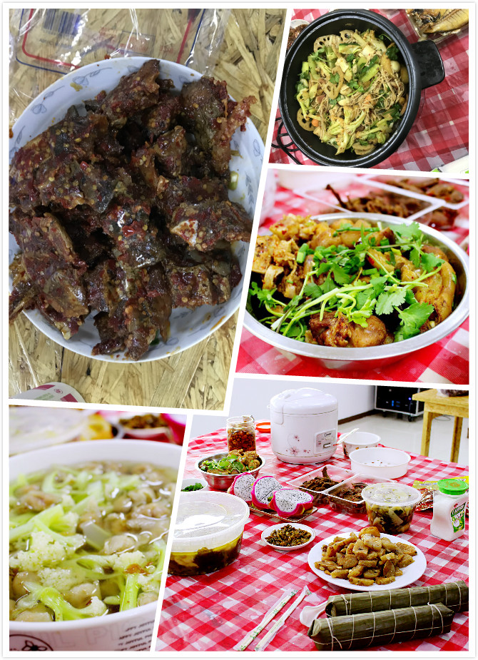 而在2017年2月的某一天,乐腾一年一度的“百家宴”开始了。虽不够隆重盛大,却热闹非凡。适逢春节假期结束,不少同事带来了自己家乡的特产。江西的酒糟鱼,贵州的香辣酥,河南济源的土膜,重庆的传统长粽子。。。当然,少不了我们大温州的酱油肉,咸菜饼,熏鸡,瓯柑。。。。。