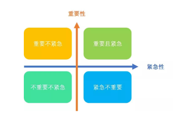 人讲事分轻重缓急,教育我们先处理重要的、紧急的事情。而现代时间科学管理中也用到了相似的时间四象限管理法,根据工作的紧急及重要性,对工作进行分类处理,划分为四个象限。