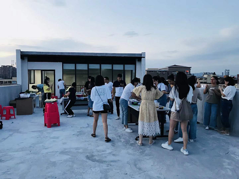 2018年9月24日 ,我来公司的第二个年头,趁着中秋节公司举办的烧烤活动,活动地点在公司5楼天台,采购部和业务部的同事集合后开始准备刷洗食物,满满一袋袋的食物,有鸡肉、猪扒、番薯。。。。。。。应有尽有,想必这次负责买食材的同事是费了挺多脑力和气力的,幸苦也! 烧烤也是需要经验和讲究方法的,如果只是草率地用竹签插上就想烤出美味的食物那是不可能的,有经验的同事提醒说要先抹上油和蜂蜜,然后时不时注意火候,以免烧焦。要属最有趣和最好吃的应是茄子了,茄子要究竟刀法,要小心翼翼切开后加入调料,这时香味很快就弥漫出来了,大家都迫不及待地拿碗拿碟准备品尝。一个字“香!”