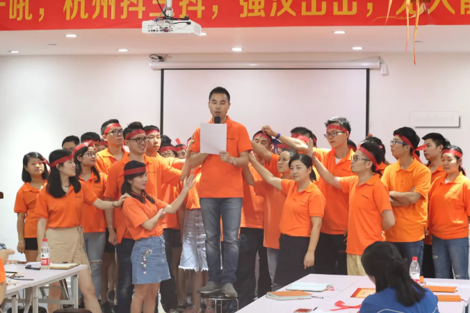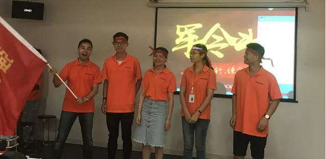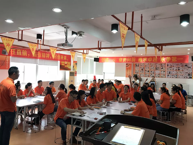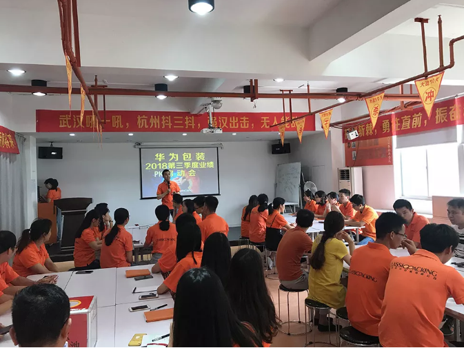6月28日华为包装总经理携全体管理人员在活动室开启2018年第三季度业绩PK赛启动会。