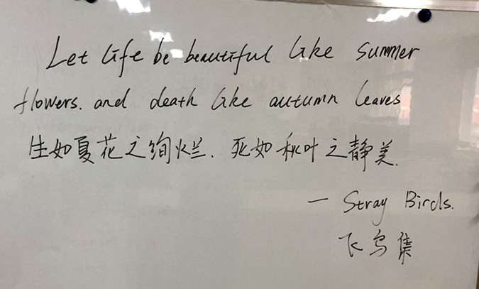 我们跟着学习,从最早的剧目演出到之后每人每一天TALK SHOW,再到我们现在的”每天一句格言“,收获多多!值得一提的是现在的“”每天一句格言“,我们每一个人,轮到他的时候,都需要准备一句英语格言,写上去,再用口语解释或举例出来;格言本身是带有正能力的,每天一句格言,每天能量满满!