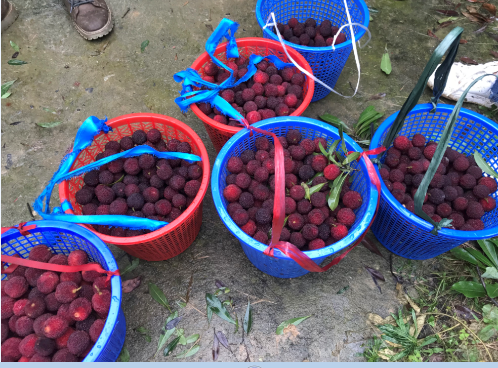 当雨稍稍小一点的时候,我们一行人还是上山了,撑着伞,穿着雨衣,穿着雨鞋,提着篮子……山里的空气真好,而且是下着雨就更是天然氧吧了,我贪婪的享受着。不知不觉就到了目的地,大家刚开始都只是看看,从树上摘下杨梅来,往嘴里送。我撑着伞,提着篮子,也开始摘起来,是不甘心,还是不由自主,自己都不知道。雨似乎没有要停的意思,我每摘一个杨梅都是不容易,左手挎着篮子撑着伞,右手要去够那高出成熟的杨梅,还要提防脚底下打滑。我想这是用生命在摘杨梅吗? 即使自己没有参与播种,感受收获也是美好的,所以即便下着雨增加的很多的难度,那一刻还是那么喜悦。左边的胳膊越来越挂不动了,篮子里的杨梅也越来越多,我在杨梅树下小心的审阅着,把我感觉成熟的杨梅一个个收如篮中。这也是人生中摘得最多的杨梅。原本以为自己不可能去做到的事,结果还做的很好,打破限制性信念,奇迹就在前面。