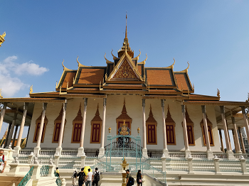 行程的第四天我们一大早的起床,看了六个小时的沿途风景从暹粒来到了柬埔寨的首都金边,用完餐后我们顶着一头烈日参观了金边的大皇宫,
