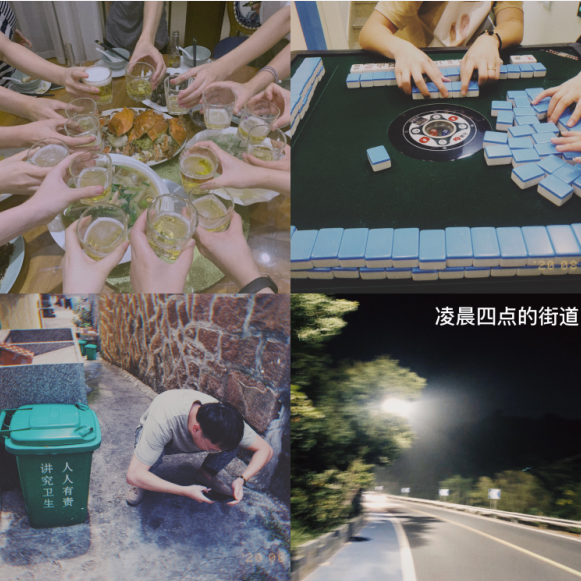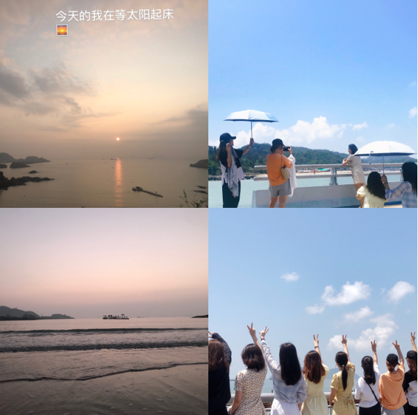 吃完饭之后大家就自由活动了,有家室的朋友们就开始给自己的小孩视频了,像我这种单身美少女当然选择风靡全国的益智游戏-麻将。最后我的辉煌战绩是赢了三把。我们还去了顶楼,看了洞头的星空。我们决定第二天去看日出,玩完麻将已经将近12点了,所以我们做了一个决定熬夜等到四点半的时候就去迎接日出。有一说一本人过了大学之后几乎没有熬夜的习惯了。在凌晨去看日出的路上自己的开心让我想起自己年幼的时候,这种纯粹的开心希望以后在工作中生活中都能时时保持,永远热爱自己。最终在5.38迎来了清晨的第一缕阳光,这是我第一次成功看到日出,还是很开心的虽然与自己想象中的有出入,但是长大的自己已经明白世事不能如自己所想的那么完美。
