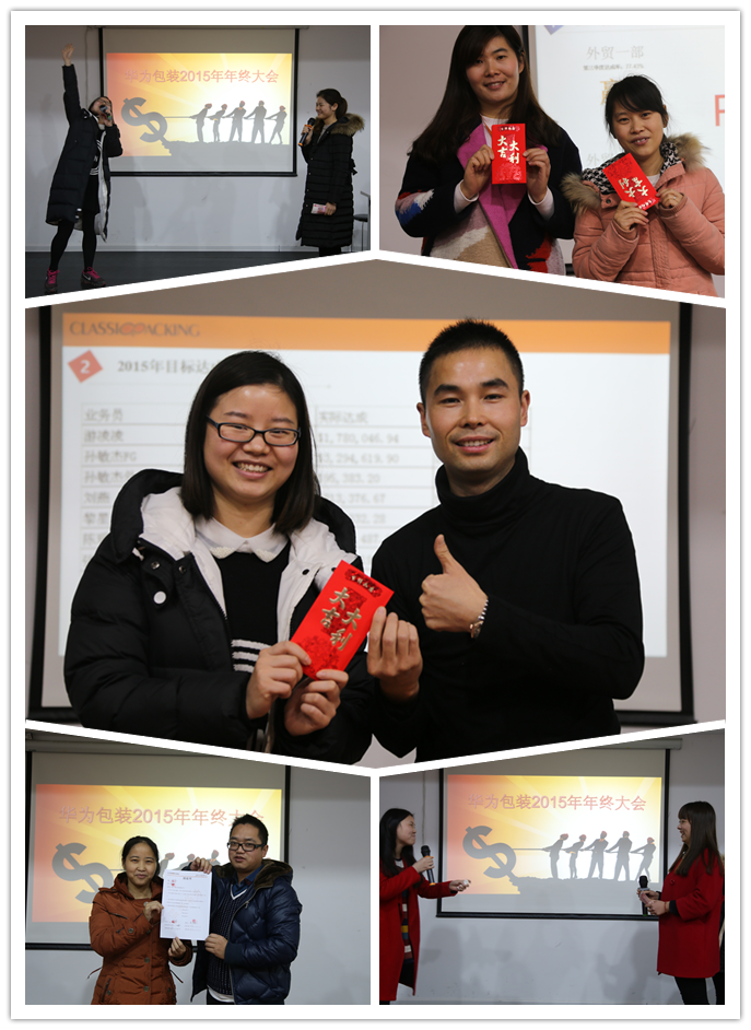 在新春佳节即将到来之际,我们在这里欢聚一堂,召开了2015年年度公司总结大会,主要目的是为了总结一年来的工作,总结经验,吸取教训,共商公司未来发展大计,并对业绩突出人员进行奖励。天气虽冷,但是我们热情如火,会议在华为包装洪总的主持下有序进行。首先各部门依次对2015年的工作情况做了汇报,并对2016年的工作进行了预期展望。回首过去的2015,既有收获,也有不足,希望在2016年 能够加以完善,扬长避短,把最好的状态投入到工作中去。希望在2016年我们能齐心协力,打造属华为的辉煌神话!