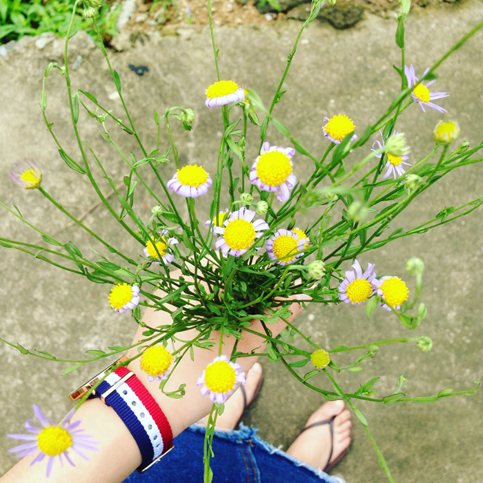 回家的路上,野花开得正盛,跟亲戚说等我一下,我要摘些回去,亲戚笑说,到处都是的花,摘它做什么?