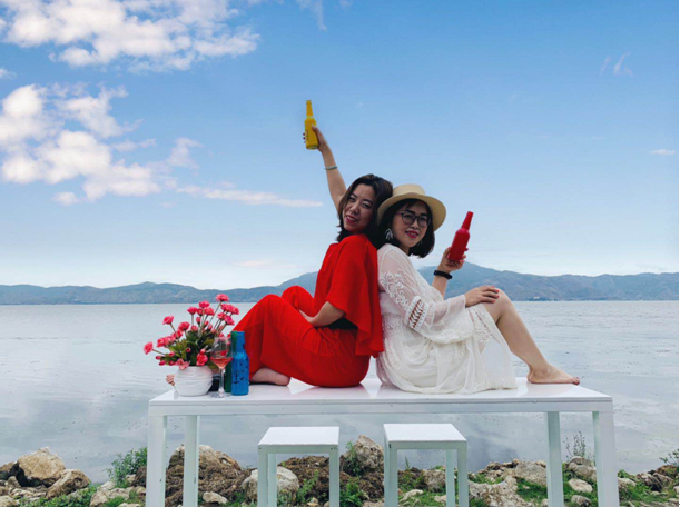 来大理,怎能不来网红打卡地,洱海呢! 瞧这群美丽的女子,各种凹造型