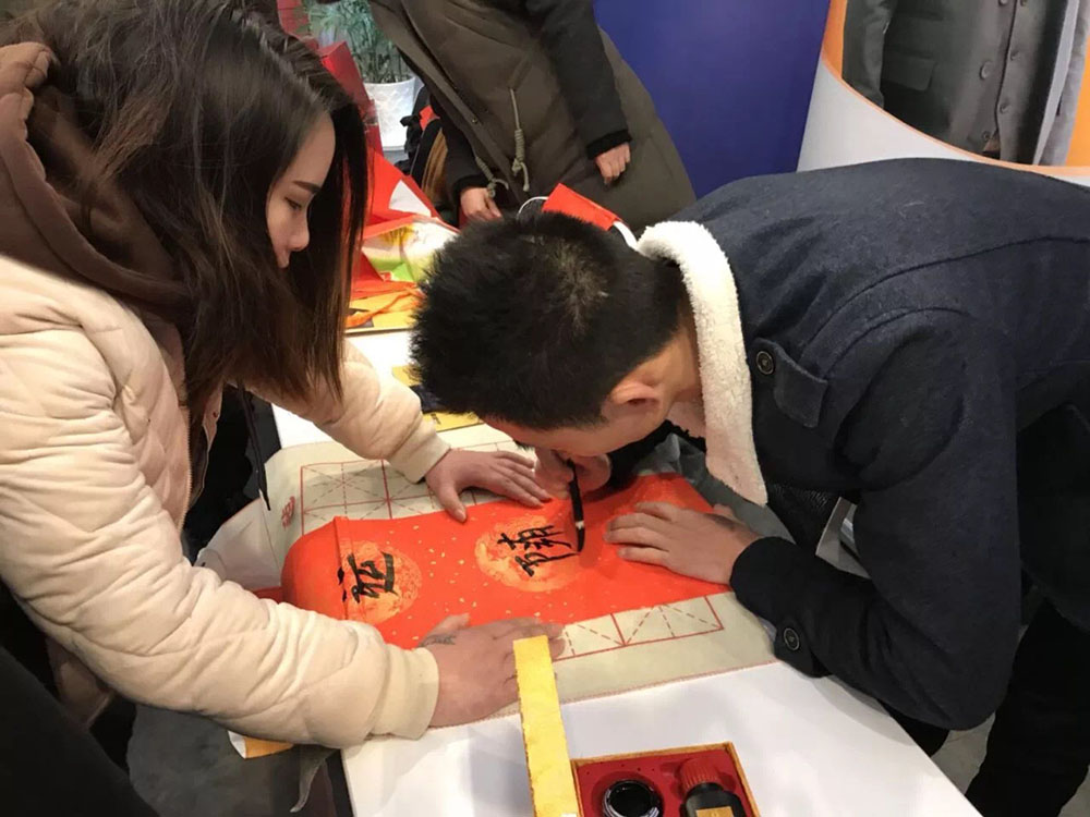 在现场写春联送春联活动环节,良仓校友们亲自构思祝福语,亲自书写,把对良仓对企业的期望和感激写到春联中,给校友们带来浓浓的祝福。