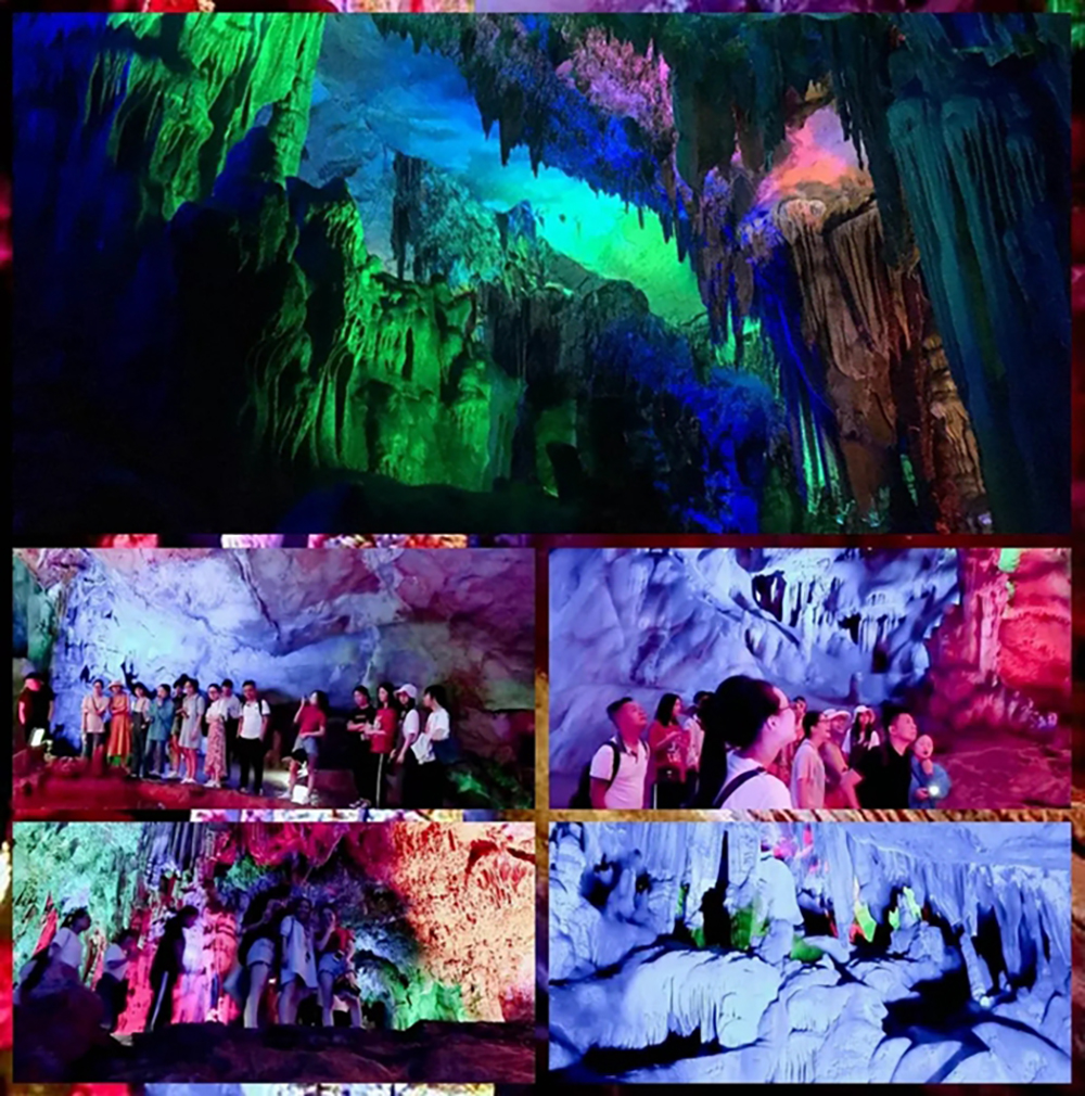 配合这五光十色的灯光,让本身灵气的溶洞更加神秘。如此美丽的风景以为会吟诗一首吗?错了,这时候我们调皮的德拉便应景说起了鬼故事,配合溶洞内隐约可见的蝙蝠让大家心跳加速,背后阵阵凉意。