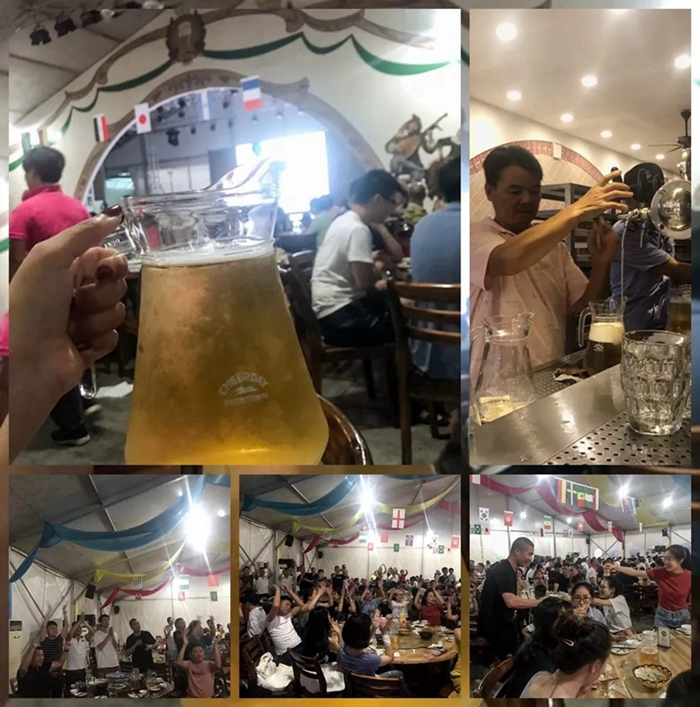 现场啤酒免费喝,台上歌手尽情演唱,这时候导游不知从哪里准备的荧光棒,人手一支,挥舞着荧光棒让整个现场HI爆。其他桌的客人纷纷投来羡慕的目光,导游可以说是很贴心啦!
