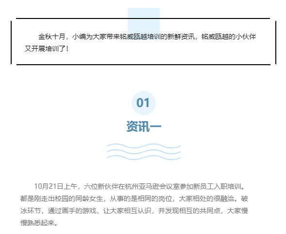 铭威瓯越(杭州公司)培训简讯