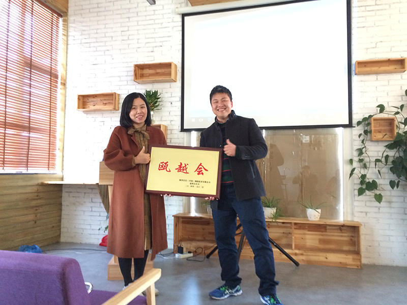 2017年瓯越会会长方茜茜将瓯越会的牌匾授予新任会长张丰,瓯越会将在新任会长的带领下承前启后继往开来。会长张丰履新发言,2018年瓯越会的工作将围绕成长与执行展开,助力会员企业老板成长,进而带领企业发展,达成引领温州网商成长的使命。