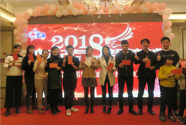 下午6时,诺华全体员工相继赶到联欢现场并抽取幸运号码。6点半晚会拉开帷幕,诺华郑总对晚会进行了开场演讲,对诺华全体员工2017年的工作做了肯定,极大的鼓舞大家的士气;紧接着各级领导对公司的年度优秀个人及销售精英进行表彰。