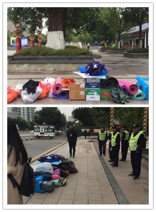 在要跑开始的前一天开始采购一大堆物资,坚果、牛肉、水果、红牛、泡面、毛巾。瞧这物资堆成山。还有来自城管的围观…