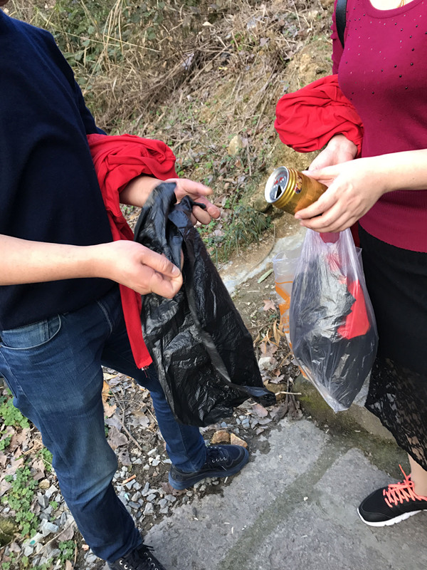 拿上我们的塑料袋,一路边走边捡垃圾,希望我们的行动能感染到过往的游客。
