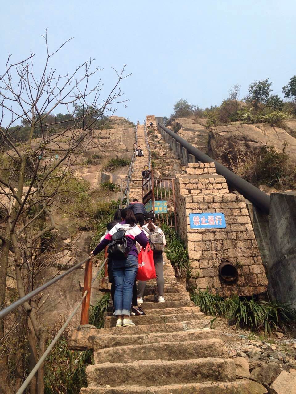 经过小伙伴们一致认为就爬我们附近的大罗山,确定路线从天河的郑岙村登千步梯上去,经过天河东水库,天河西水库与绣山水库,从茶山五美景园下来!总共用时5个小时,从刚开始的千步梯的陡坡爬上来的时候,第一次登怎么样的快垂直的步梯上去非常的吃力,还要负重水与中午的午餐!万事开头难到,后来的越来越轻松,全靠前面的难,才有了后面的轻松自在!
