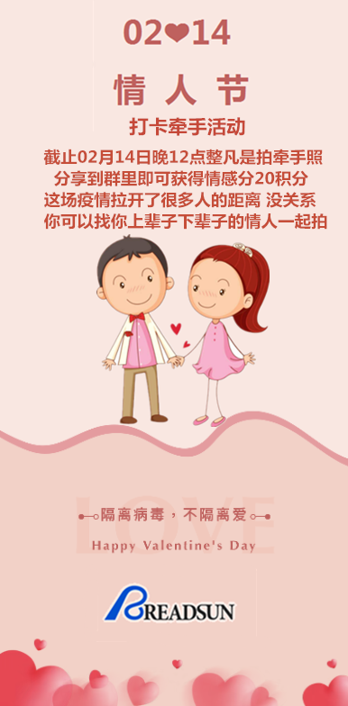 为了响应政府号召,瑞尚也开启在家办公模式, 由于长时间不能见面2月14号情人节那天,为了增加大家之间的交流互动,我们在线上发起一个打卡活动