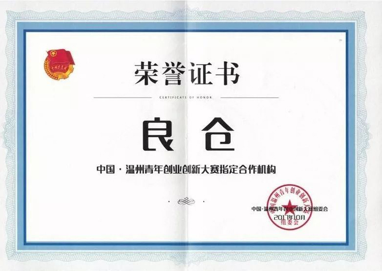 此外,组委会还向温州良仓颁发了荣誉证书,这也就意味着良仓正式成为大赛指定合作机构。