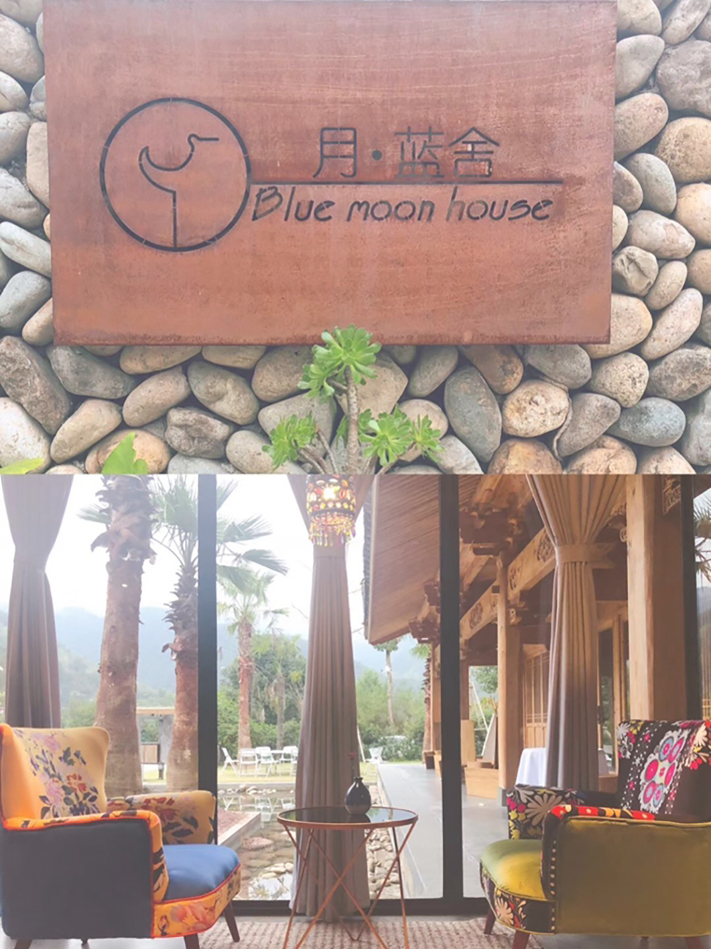 听闻泰顺廊桥历史悠久,第二站到达泰顺廊桥文化园,有如此浑厚历史感的景点,708090后来到这里都惊呆了, 发展这样迅速的时代已经很少再见到这些蓑衣、滚铁圈、木蛇等物品,还有各种干货了。说到干货,大家开始头脑风暴,眼看这次活动要超预算,我们便计划着把这里的干货高价售卖给莫妮卡在西班牙代购,肯定畅销!一来推广中国传统美食,二来减轻团建费用,岂不是一举两得? 莫妮卡:??? 终于来到期盼已久的“月·蓝社” “月满畲楼影,蓝舍游人来;忧烦随风散,山水比尘埃。”这首诗可以描绘这栋诗意般的民宿了。