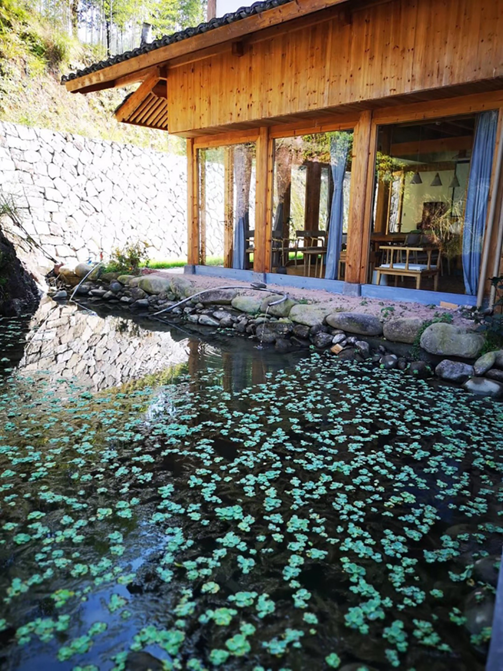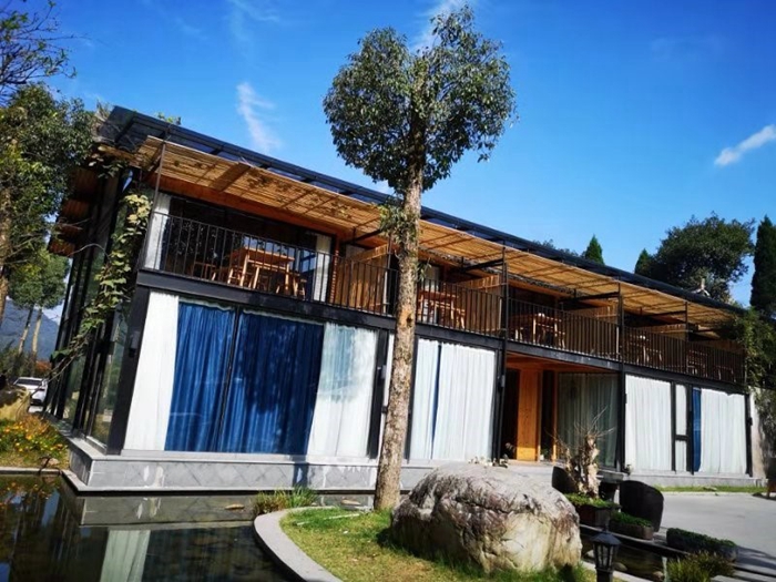 在这里群山环绕处,远离城市的喧嚣,遍布竹林花海,处处皆闻花香。房间材料杉木结构,房间飘散着淡淡的木香味。简直是向往的生活。