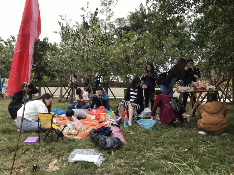 我们在绿色的地毯上吃着同事们带来的美味佳肴,边赏花边享受美味这真是人生一大美事。