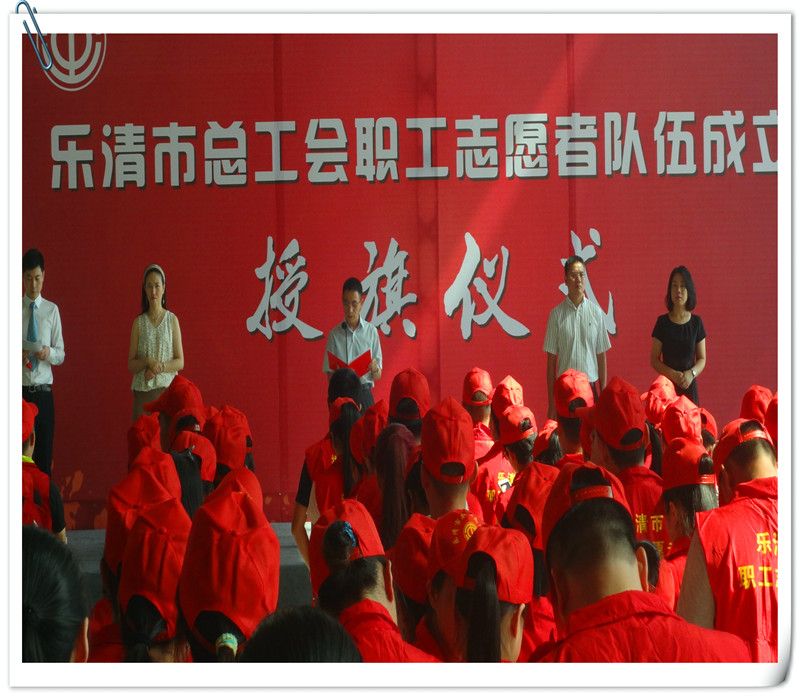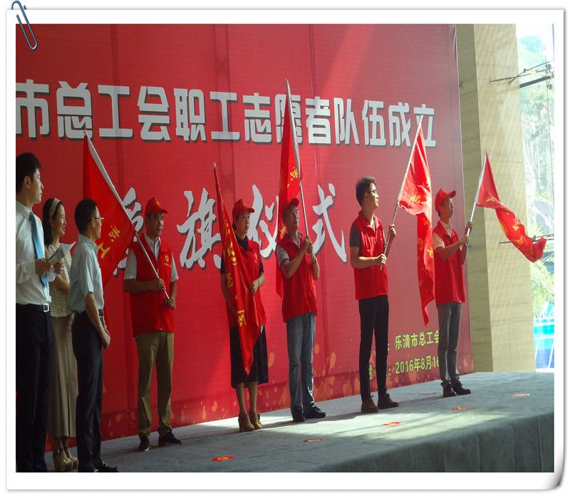 2016年8月16日上午在乐清市总工会一楼乐清市工会主席赵思平同志宣布总工会职工志愿者队伍成立,并当场授旗。授旗仪式结束后我们的志愿者们就去乐清的丹霞路、双雁路等最繁忙的路段开展“文明礼让斑马线”的活动,志愿者们顶着烈日在马路上进行文明倡导,为了迎接G20做出自己的一份贡献。