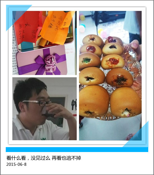 话说,2015年6月8号有两位寿星那!!!骚年那高智商说出来怕吓到你们!!!一样先抑后扬!!前几天各种调侃,生日当天各种一副懒得搭理!!!一样用高超的借口拐骗当事人——萌萌哒小弟江秀都离场!!!然后迅速掏出昨个就备好的一大袋小弟此生最爱——猪肉脯(不知道以后还爱不),给他做出重口味、肉肉版,独家特质蛋糕!!!还有秘制小面包以及神仙水!!!