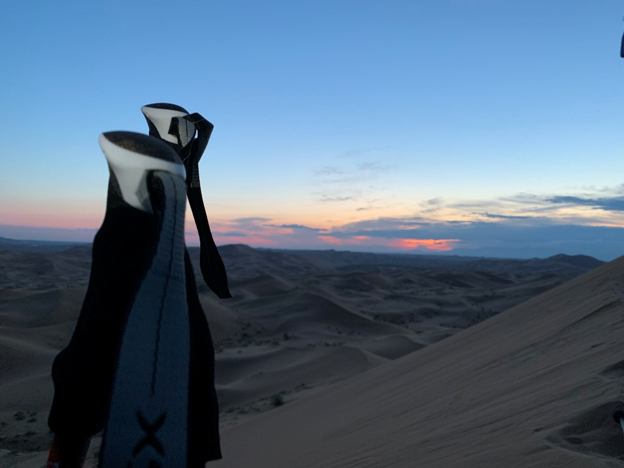 经过一晚上的休息后第三天我们在7点半出发开始12个小时的徒步.这中间有中暑的小伙伴,有双脚走出水泡的小伙伴,还有鞋子底掉了的伙伴,也许大家都用过放弃徒步的想法,想要坐车出沙漠的想法,可是最终大家还是心怀一个信念,这是一次团队的锻炼,我是不可以掉链子的,我不可以拖团队的后腿,大家还是坚持到最后完成了第三天18公里的徒步。