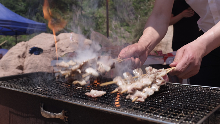 我们的团队中有一些素食者和健身者,他们会选择只吃黄瓜串,或者豆角串,玉米串等,而我们的新疆帅哥Jake则是完全的肉食动物,无肉不欢。国内销售部的小伙伴则都是喝酒爱好者,他们悄悄地把啤酒拿去沙滩边岩石沟的某个洞里冰镇。这原始的冰镇法不禁让我想起了小时候的夏天,我们会把西瓜藏在水井里冰镇,而当我们吃到西瓜的时候,就会有一种透心凉的爽快感!