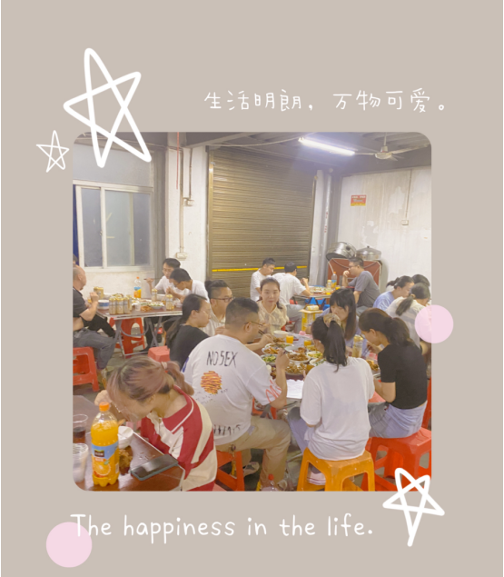 晚上公司还贴心的给员工们准备了丰盛的晚餐宴,大家围桌而坐,边吃边说说笑笑,不亦乐乎,让远在异乡的员工们能感受到家的温暖。