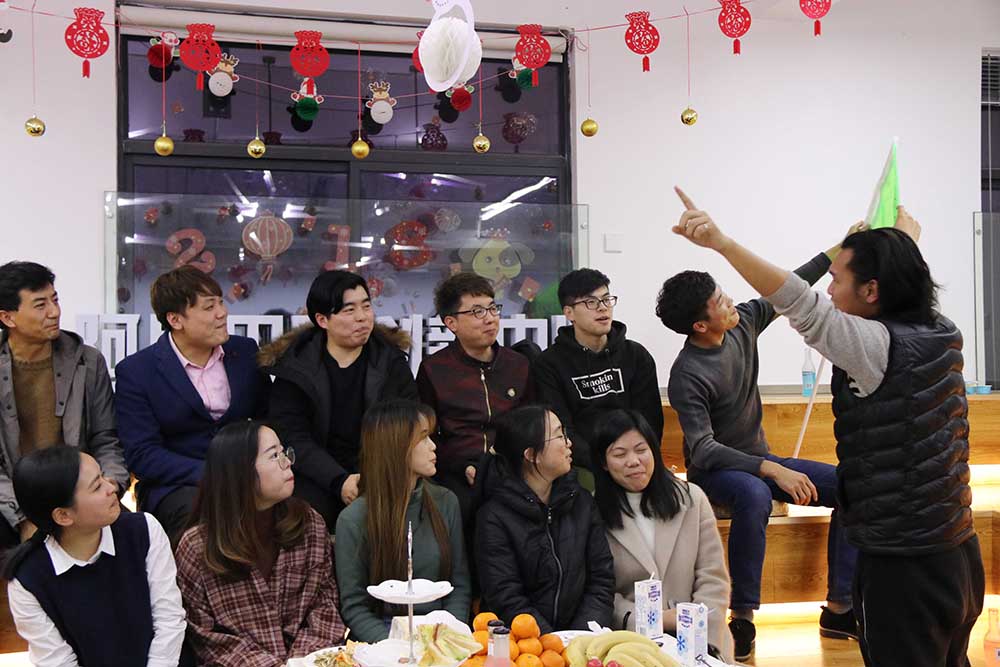 下面便是跨年趴的重头戏—室内拓展互动,本次的跨年趴的室内拓展互动全程是由小八体育教育策划并组织开展,在此我们特别感谢小八体育对本次活动的大力支持!在老翟的全程引导下,小伙伴们进行了开火车、极速60秒、漫漫人生路三项室内互动。