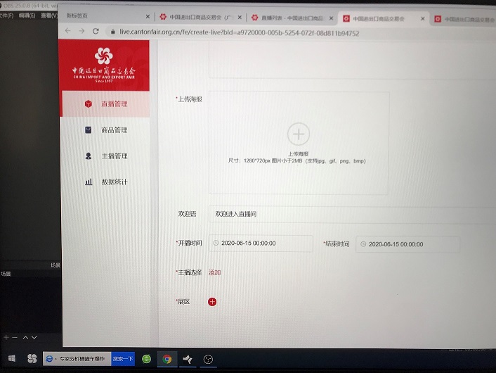 14. 全部添加完后在广交会平台点击开始推流,再回到OBS点击右下方开始推流按钮 即直播开始