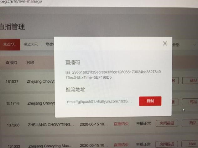 10.返回广交会平台→复制直播码到OBS串流密钥匙→复制推流地址到OBS服务器→点击应用、保存