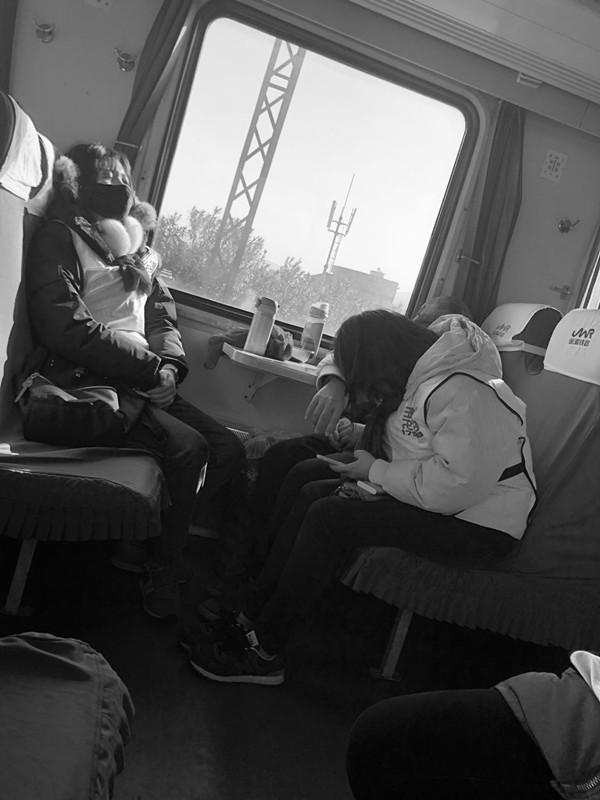 没有悠闲的休息和令人沉醉的泡面,我们被教练和财政赤字所捆绑,不敢懈怠,在车上开始卖艺赚钱,我们依靠变拙劣的魔术,当然还有大卡坚持不懈的歌唱,赢得了宝贵的五十块钱,后来我们的才艺展示被乘务员劝停,我们也想着不能影响列车里的秩序,才在车上有了短暂地休息。