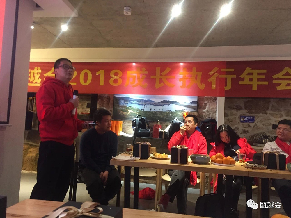 2018年12月15日瓯越会2018成长执行年会在台州温岭举办。2018年瓯越会在第六任会长张丰的带领下以成长执行为主题完善瓯越会的体系变革。今年的年会也是别出心裁不同以往。年会由【速度666,激情777】主题团建活动和年会总结两部分组成。