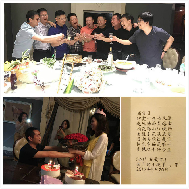 会后的聚餐上发生了浪漫的一幕,当天正好是瑞尚光学钟总的生日,在场伙伴不仅为何总送上了精致蛋糕,钟总爱人还作为神秘嘉宾献上玫瑰花束,深情告白,感情深厚,令人艳羡