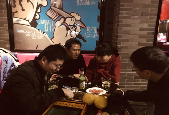 作为女中豪杰的她,面对酒战沙场的老龙,真的不甘示弱啊。我们几个在边上拍手叫好。