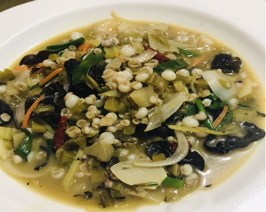 嗯。不错。这下我的胃口大开,刚进入口里是鲜的,里面有咸菜的咸,和海鲜的鲜。两种的结合、完美。